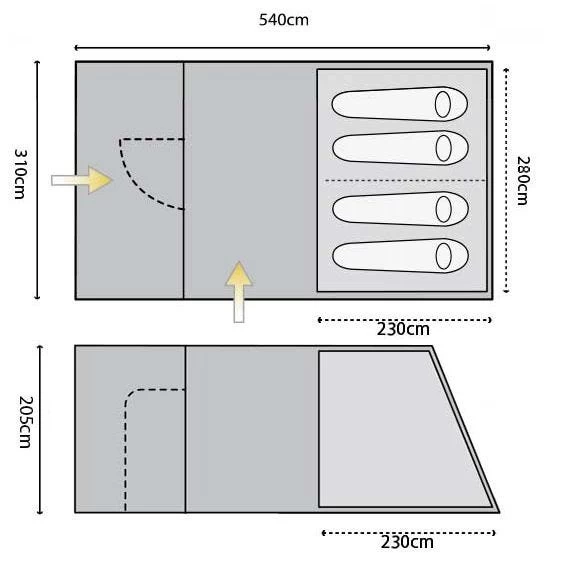 - Groundsheet: PE, 120g/m²