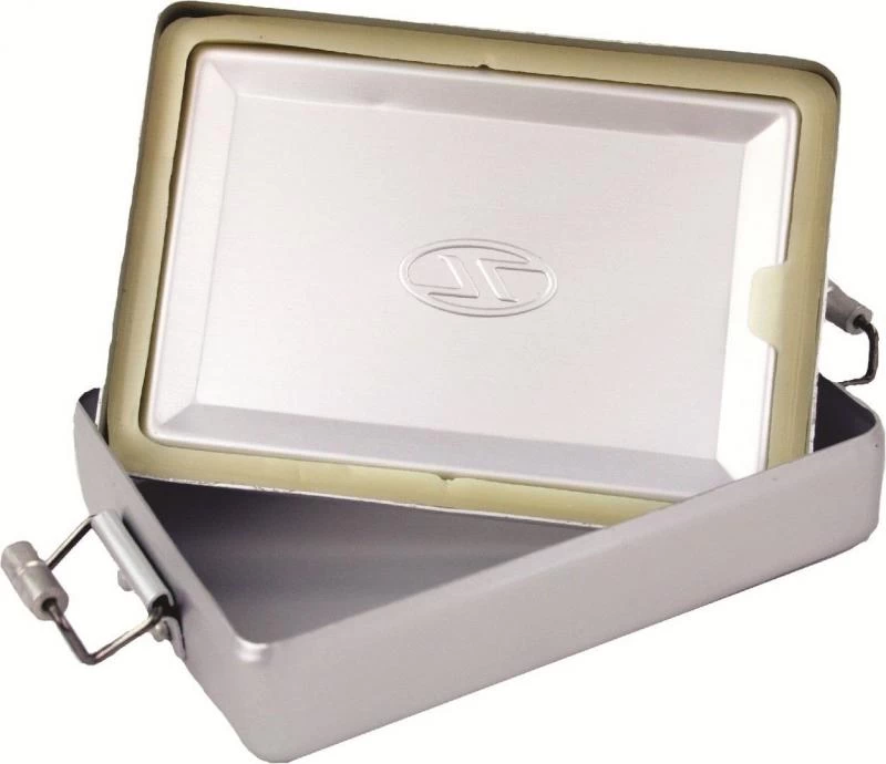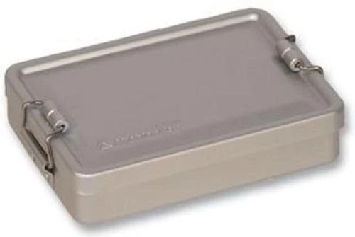 Lightweight aluminium survival tin. A small aluminium storage box which is>